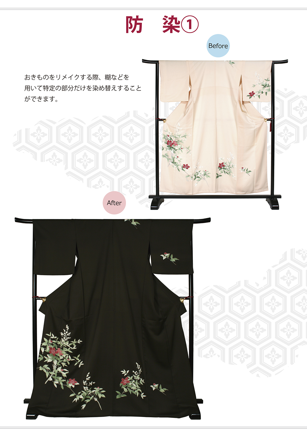 汚れがひどく、シミも有り、お気に入りのお着物が着られない、派手になってしまったと悩んでらっしゃる方!